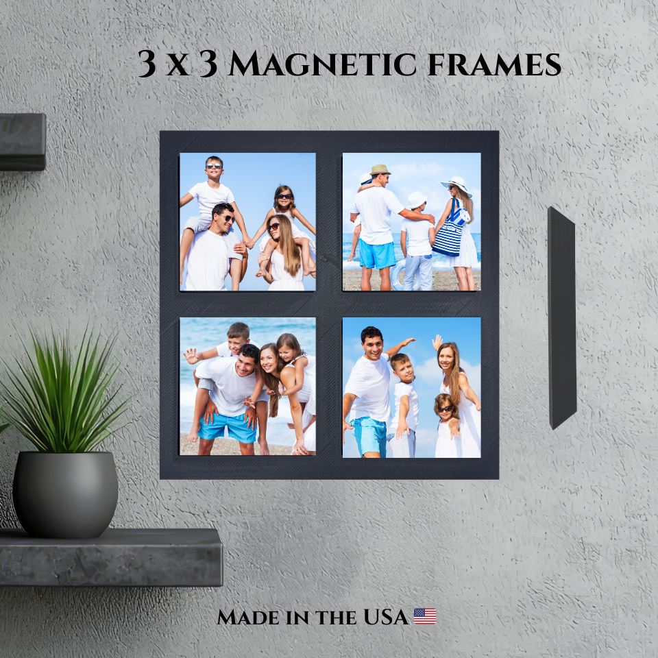Specifically designed to fit 3x3" (80x80mm) magnets. These 3D-printed frames feature a clean, minimalistic design with built-in magnets on the back, so you can stick them right onto any magnetic surface with ease. No glue, no nails, no fuss.