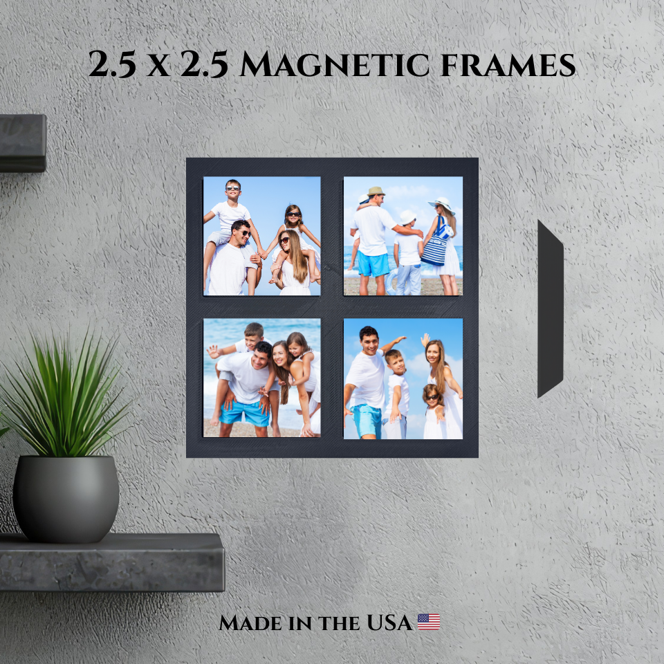 Specifically designed to fit 4 standard 2.5x2.5" (63.5x63.5mm) magnets. These 3D-printed frames feature a clean, minimalistic design with built-in magnets on the back, so you can stick them right onto any magnetic surface with ease. No glue, no nails, no fuss.