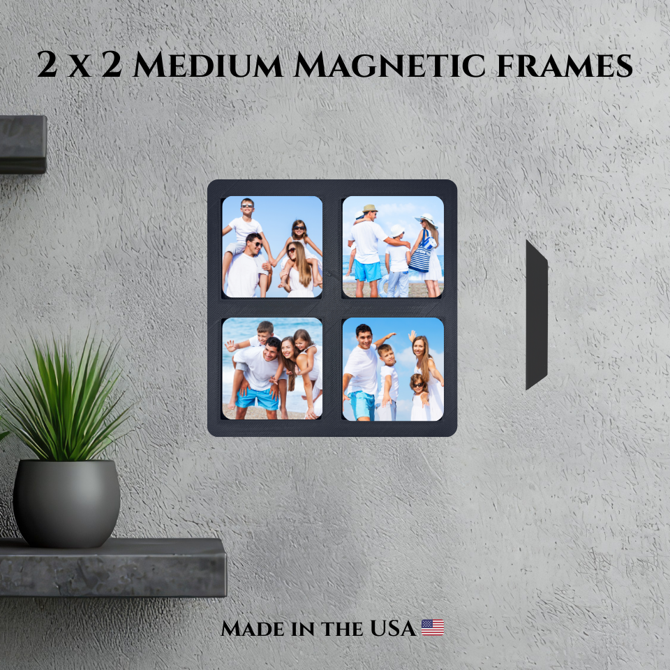 Specifically designed to fit 2x2" (50x50mm) ROUND EDGE magnets. These 3D-printed frames feature a clean, minimalistic design with built-in magnets on the back, so you can stick them right onto any magnetic surface with ease. No glue, no nails, no fuss.