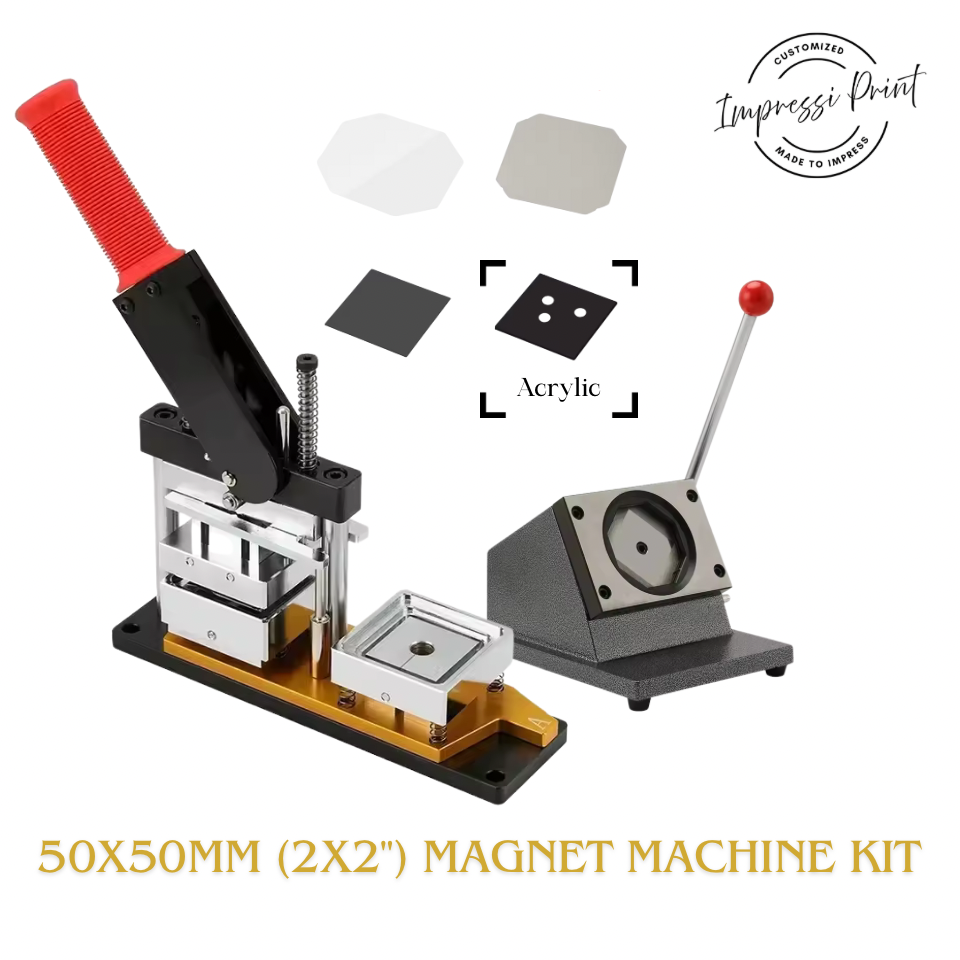 Includes: 1 50x50mm (2x2") Magnet Machine, 1 Die Cutter, & 100 Cardboard OR Acrylic Material Sets. (Please Select Desired Machine Option By Clicking The Dropdown Menu)
